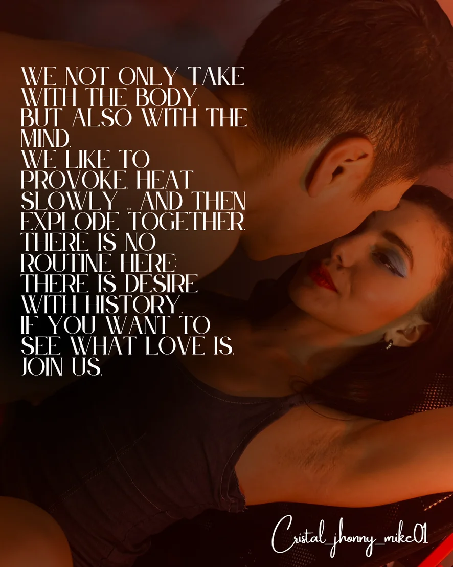We love to play, explore new things, and share every fantasy. There’s no routine here—just desire, connection, and a deep craving for endless pleasure. We genuinely have fun, and every show is the perfect mix of lust, affection, and raw heat.